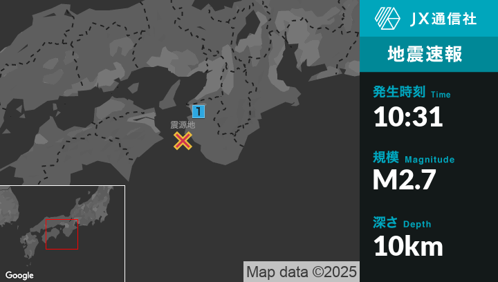 | 発生時刻 | 震源地 | 地震の規模 | 深さ |