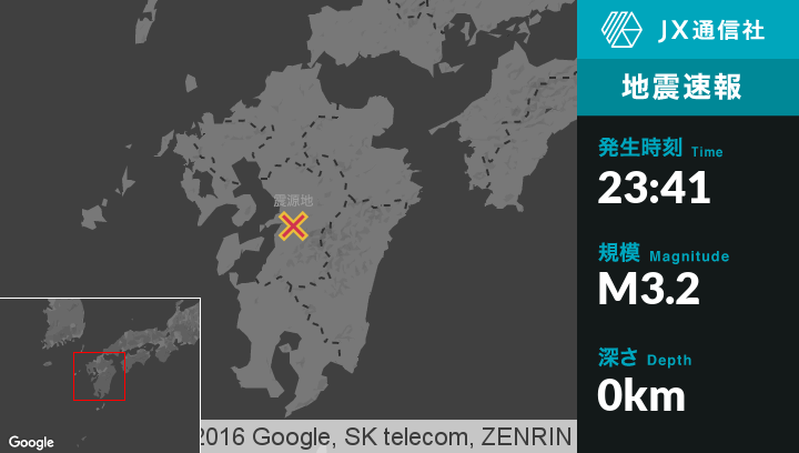 | 震度1 | 熊本西区, 宇土市, 熊本美里町, 甲佐町, 山都町 |