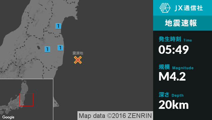 | 震度1 | 岩沼市, 郡山市, 白河市, 田村市, いわき市, 南相馬市, 福島広野町, 楢葉町, 富岡町, 双葉町, 浪江町 |