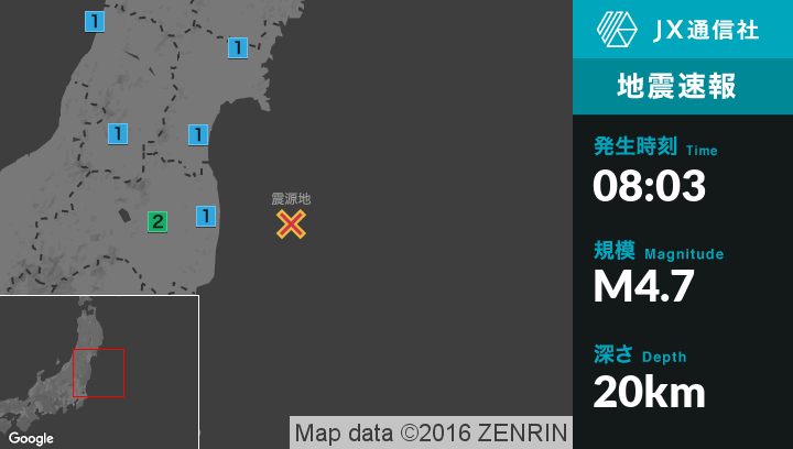 | 震源地 | 福島県沖 |