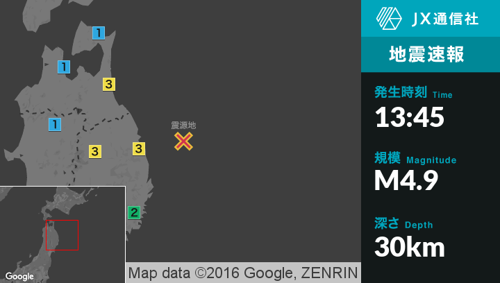 | 震度3 | 階上町, 普代村, 盛岡市 |