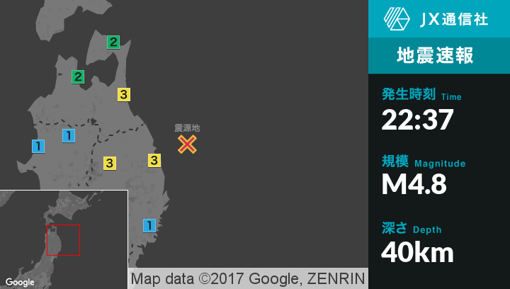 | 発生時刻 | 2017年2月12日 22時37分頃 |