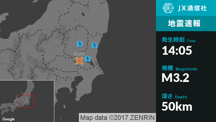 | 震度1 | 水戸市, 笠間市, 小美玉市, 石岡市, 筑西市, 桜川市, 宇都宮市, 栃木市, 真岡市, 下野市 |