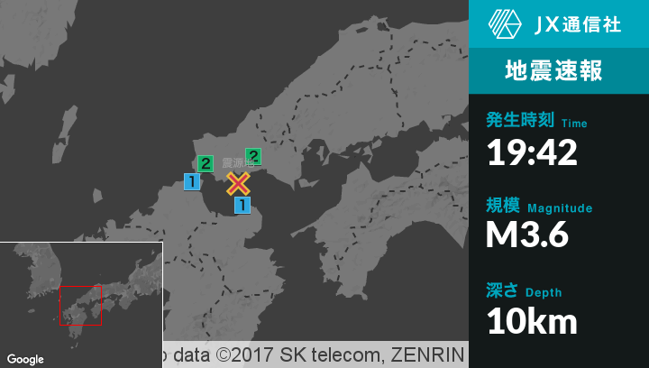 | 震度2 | 宇部市, 山陽小野田市, 山口市, 防府市 |