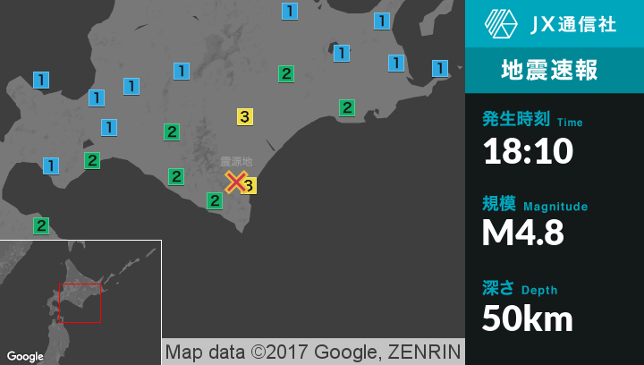 | 震度3 | 幕別町, 浦幌町, 更別村, 十勝大樹町 |