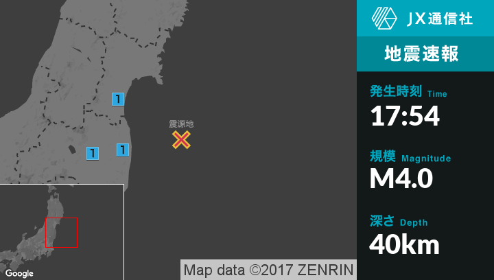 | 震度1 | 岩沼市, 宮城川崎町, 山元町, 田村市, 福島伊達市, 相馬市, 南相馬市, 福島広野町, 楢葉町, 浪江町, 新地町 |
