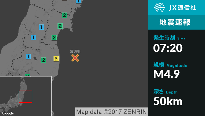 | 震度1 | 葛尾村, 飯舘村, 福島市, 二本松市, 福島伊達市, 川俣町, 大玉村, 鏡石町, 西郷村, 矢吹町, 矢祭町, 石川町, 平田村, 三春町, 猪苗代町, 会津坂下町, 気仙沼市, 栗原市, 大崎市, 色麻町, 宮城加美町, 涌谷町, 宮城美里町, 南三陸町, 白石市, 七ヶ宿町, 大河原町, 村田町, 柴田町, 宮城川崎町, 仙台青葉区, 仙台宮城野区, 仙台若林区, 仙台太白区, 仙台泉区, 松島町, 七ヶ浜町, 利府町, 大和町, 大郷町, 大衡村, 水戸市, 北茨城市, ひたちなか市, 常陸大宮市, 小美玉市, 茨城町, 東海村, 大子町, 土浦市, 石岡市, 常総市, 取手市, 牛久市, つくば市, 茨城鹿嶋市, 潮来市, 筑西市, 坂東市, 稲敷市, かすみがうら市, 桜川市, 行方市, 鉾田市, 美浦村, 利根町, 那須塩原市, 那須町, 宇都宮市, 真岡市, 那須烏山市, 益子町, 市貝町, 芳賀町, 栃木那珂川町, 大船渡市, 釜石市, 住田町, 盛岡市, 一関市, 上山市, 中山町, 米沢市, 南陽市, 高畠町, 沼田市, 桐生市, 渋川市, 千代田町, 邑楽町, 熊谷市, 行田市, 加須市, 東松山市, 鴻巣市, 久喜市, 吉見町, さいたま見沼区, さいたま中央区, さいたま緑区, 春日部市, 草加市, 幸手市, 川島町, 宮代町, 杉戸町, 香取市, 多古町, 千葉中央区, 千葉美浜区, 浦安市, 印西市, 東京千代田区, 東京杉並区, 東京北区 |