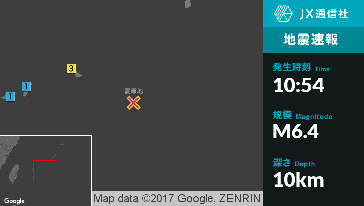 | 震度1 | 座間味村, 久米島町, 石垣市, 竹富町 |