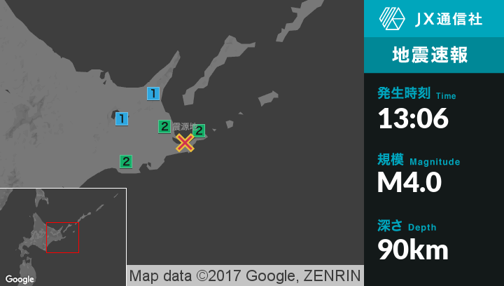 | 震度2 | 浜中町, 標茶町, 別海町, 根室市 |