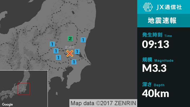 | 震度1 | 足利市, 栃木市, 佐野市, 小山市, 真岡市, 下野市, 益子町, 野木町, 笠間市, 小美玉市, 土浦市, 茨城古河市, 石岡市, 下妻市, 常総市, つくば市, 筑西市, 坂東市, 桜川市, 群馬明和町, 加須市, 久喜市, 春日部市, 野田市 |