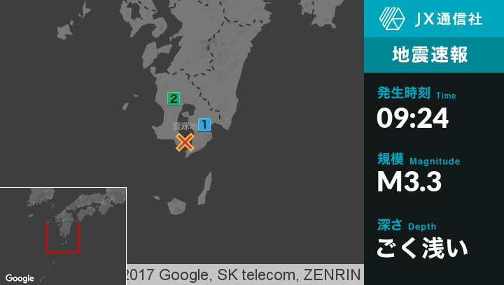 | 震度2 | 鹿児島市, 指宿市 |