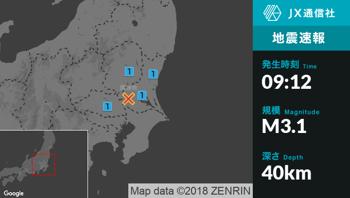 | 震度1 | 水戸市, 笠間市, 小美玉市, 城里町, 土浦市, 茨城古河市, 石岡市, 栃木市, 下野市, 春日部市 |
