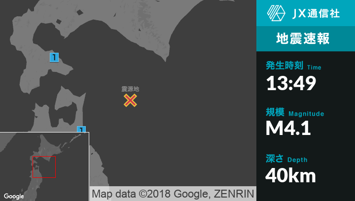 | 震度1 | 函館市, 八戸市, 野辺地町, 七戸町, 東北町, 六ヶ所村, 五戸町, 青森南部町, 階上町 |
