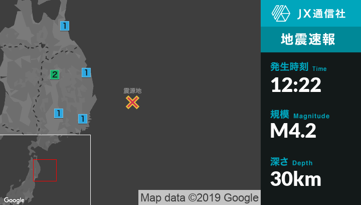 12月8日 12時22分頃発生した地震(最大震度2)