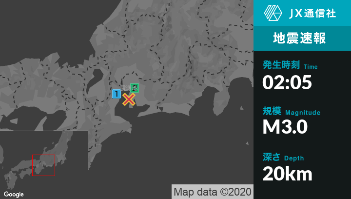 1月6日 2時05分頃発生した地震(最大震度2)