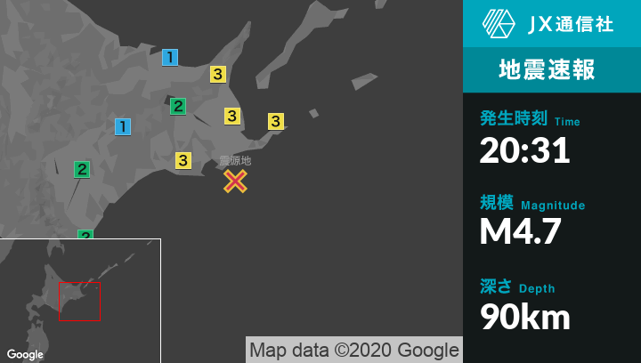 1月15日 20時31分頃発生した地震(最大震度3)