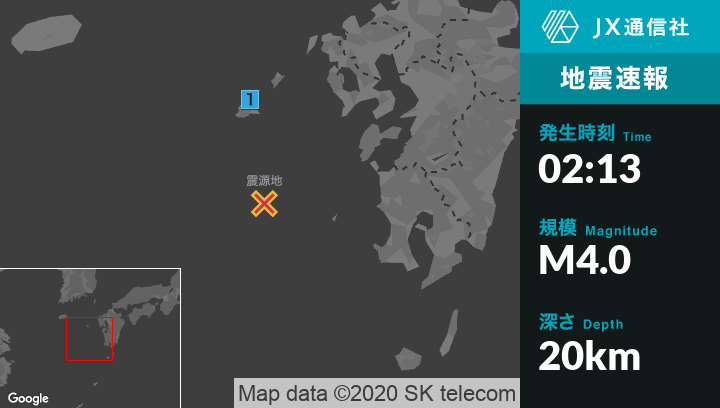 2月8日 2時13分頃発生した地震(最大震度1)