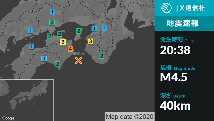 | 最大震度 | 震度4 |