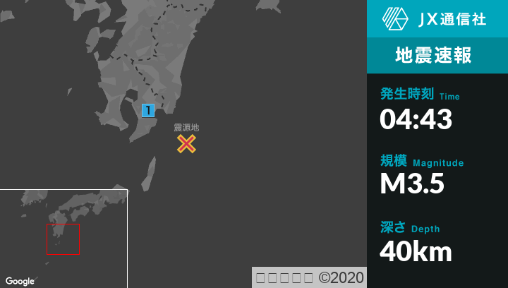 6月2日 4時43分頃発生した地震(最大震度1)