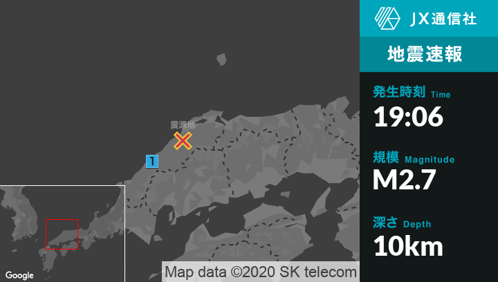 7月10日 19時06分頃発生した地震(最大震度1)