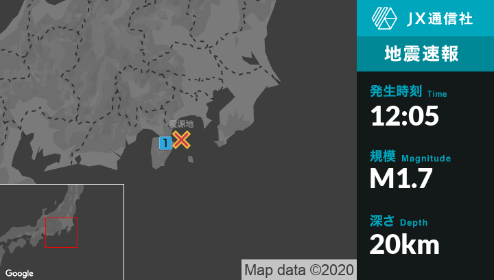 12月14日 12時05分頃発生した地震(最大震度1)