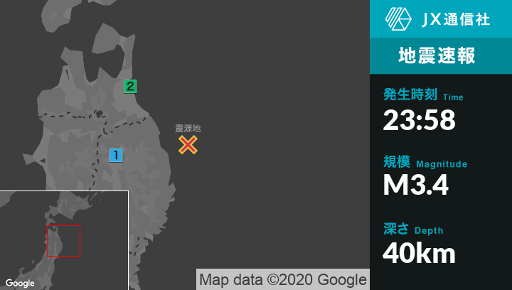 12月18日 23時58分頃発生した地震(最大震度2)