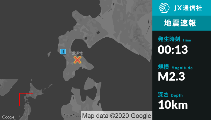 12月26日 0時13分頃発生した地震(最大震度1)