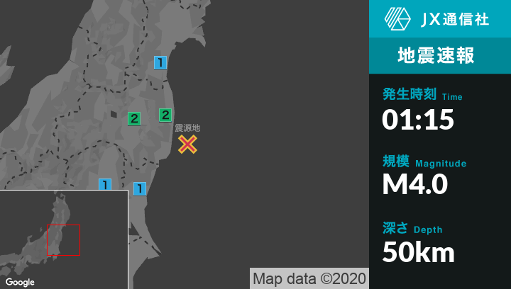 12月29日 1時15分頃発生した地震(最大震度2)