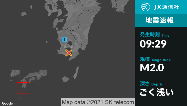 1月14日 9時29分頃発生した地震(最大震度1)
