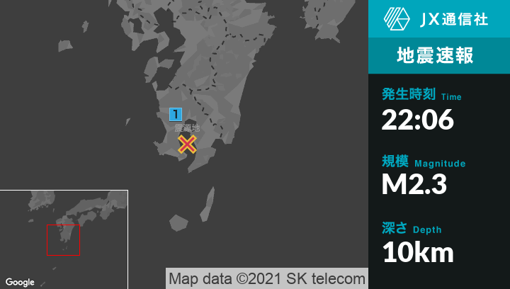 1月14日 22時06分頃発生した地震(最大震度1)
