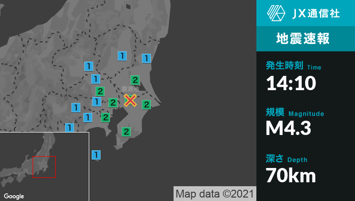震源地千葉県北西部