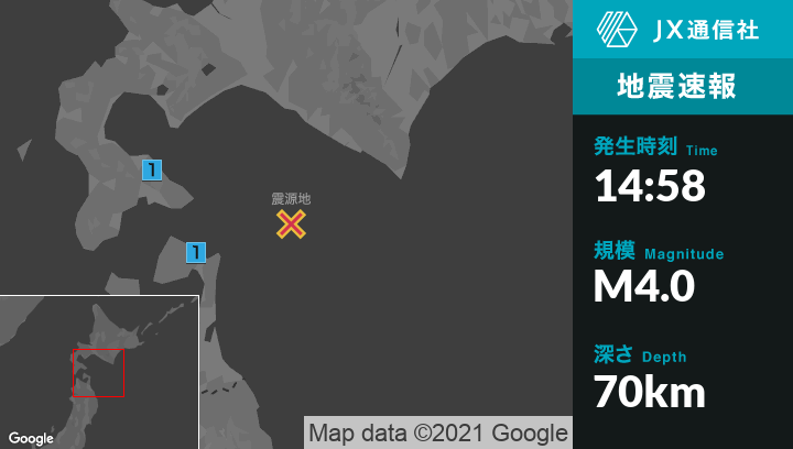 3月8日 14時58分頃発生した地震(最大震度1)