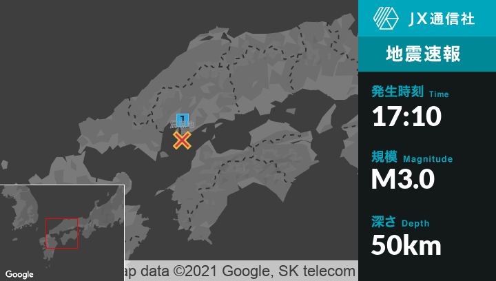 4月16日 17時10分頃発生した地震(最大震度1)