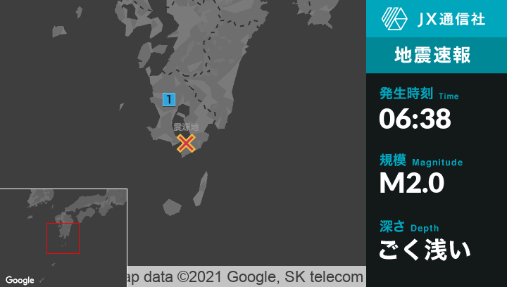 8月5日 6時38分頃発生した地震(最大震度1)