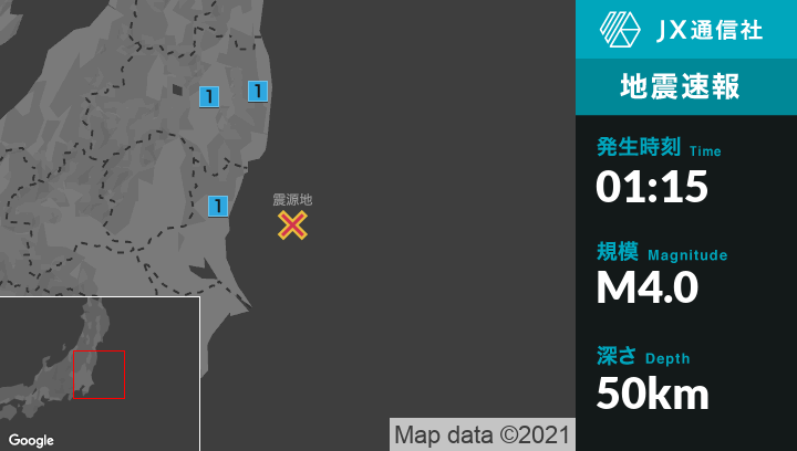 8月10日 1時15分頃発生した地震(最大震度1)