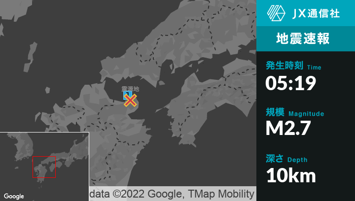 4月22日 5時19分頃発生した地震(最大震度1)