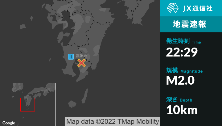 7月10日 22時29分頃発生した地震(最大震度1)