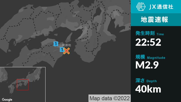 8月8日 22時52分頃発生した地震(最大震度1)