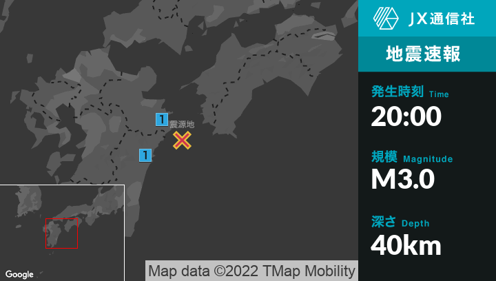 11月3日 20時00分頃発生した地震(最大震度1)