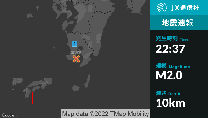 12月1日 22時37分頃発生した地震(最大震度1)