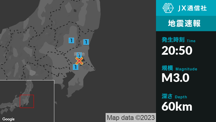 1月15日 20時50分頃発生した地震(最大震度1)