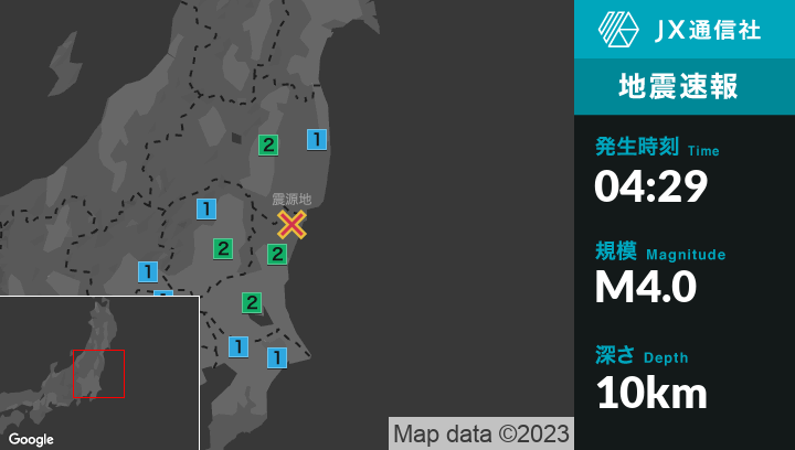 3月14日 4時29分頃発生した地震(最大震度2)