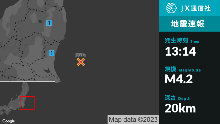 4月2日 13時14分頃発生した地震(最大震度1)