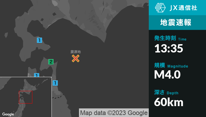 9月25日 13時35分頃発生した地震(最大震度2)