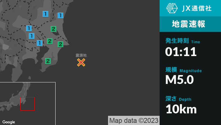 12月22日 1時11分頃発生した地震(最大震度2)