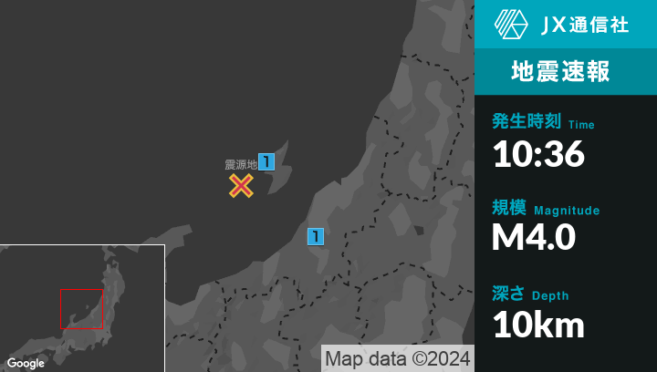 1月3日 10時36分頃発生した地震(最大震度1)