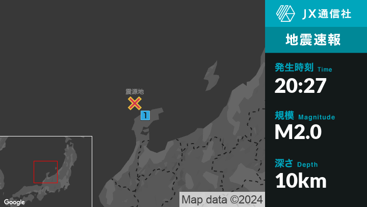 2月27日 20時27分頃発生した地震(最大震度1)