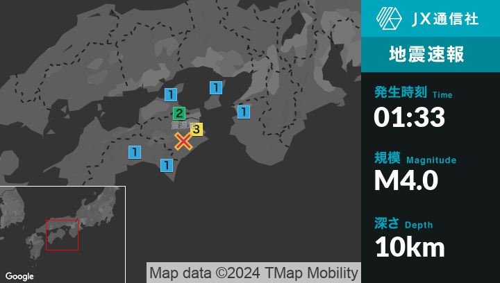 | 発生時刻 | 2024年12月29日 1時33分頃 |