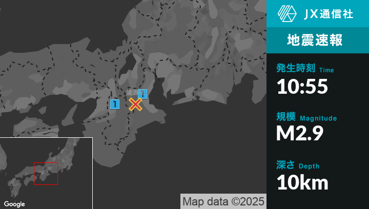 1月8日 10時55分頃発生した地震(最大震度1)