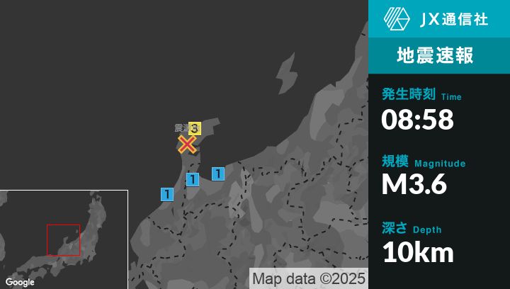 | 地震の規模 | マグニチュード 3.6 |